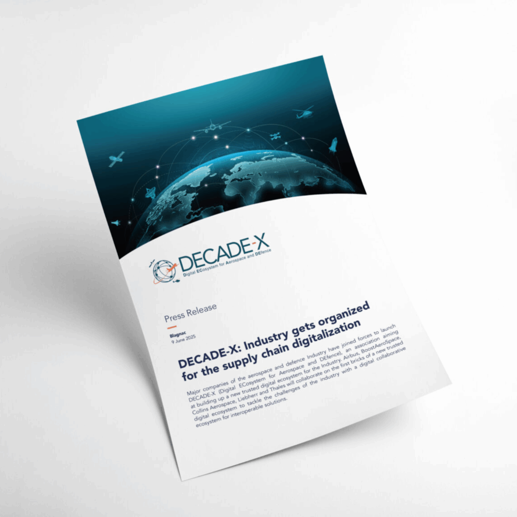Originating from a 2023 initiative where 18 leading industry players explored the concept of Data Spaces drawing on the GAIA-X principles, DECADE-X was formally launched in 2025 by founding members Airbus, BoostAeroSpace, Collins Aerospace, Liebherr, and Thales. These companies envisioned a collaborative data infrastructure that addresses the unique needs of all stakeholders, especially small and medium-sized enterprises (SMEs).